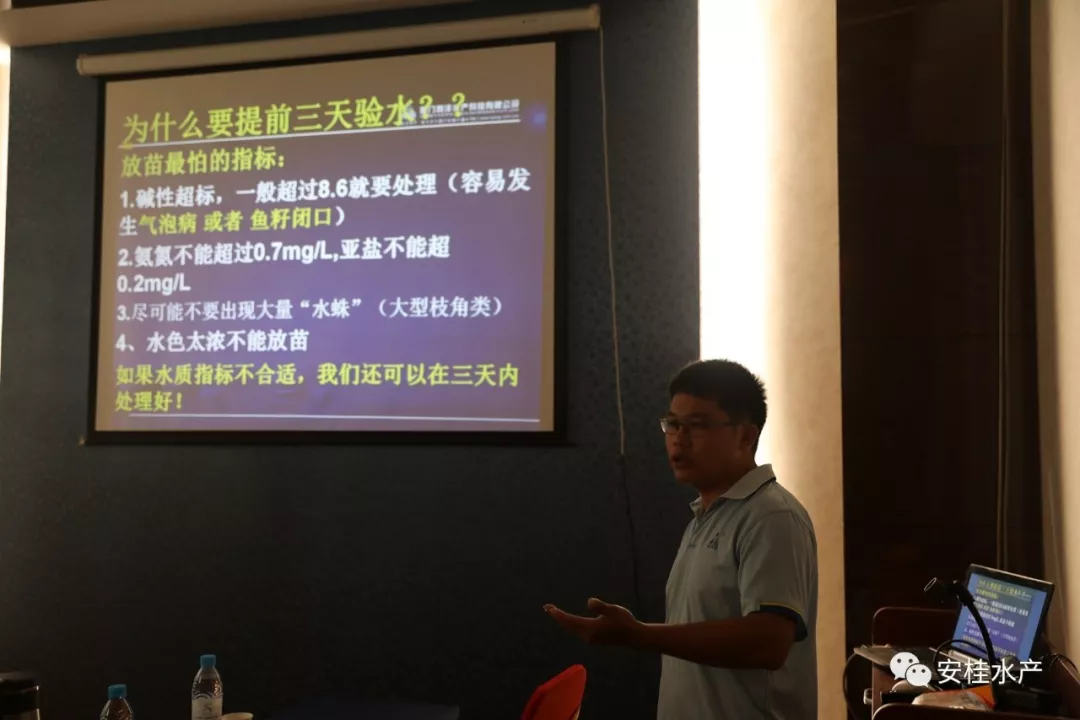 安桂水产鱼苗板块负责人蔡燊介绍目前部分育苗从业者现状