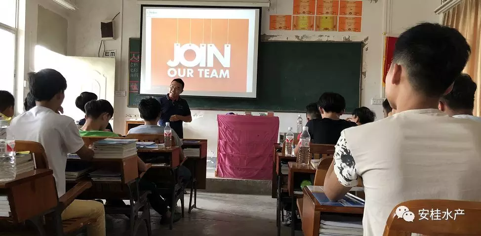 应广西水产畜牧学校领导和老师的盛情邀请,广西安桂水产公司总经理一行专程到校,给即将毕业的学子传授多年利用专业知识为广西水产事业作贡献,为水产养殖客户高效服务的经验,受到学子们的热情欢迎。