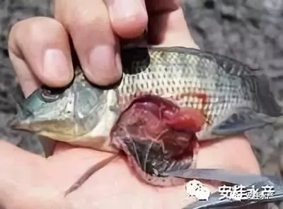 患病的罗非鱼一般在池塘边离群独游、身体弯曲打转,或者在水面上慢游,反应迟钝,体色发黑,鱼体运动失衡,角膜浊白、眼球外突、肛门红肿等。病鱼眼球突出或混浊发白,同时伴随着眼部出血,鱼体下颊部出现鳞片脱落、出血、肌肉坏死等现象,其他部位如腹鳍、胸鳍、尾鳍的基部有出血并伴有肌肉坏死现象;胆囊、肝脏、脾脏肿大,严重时糜烂;肠道发炎,肠胃较空,内有积水或黄色粘液;部分患病鱼内脏如肠道、肝、脾、肾有出血现象。